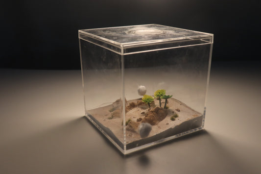 The term outworld is defined as "an outlying or alien planet". Ant outworlds are foraging areas for the workers to scavenge and hunt for food. They can be connected to an existing formicarium, or be used as a Cubes and Tubes setup by placing the colony's test tube inside the container.